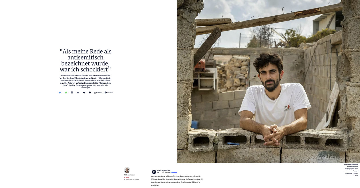 unter den meistgesenen Beiträgen von HAARETZ gehört dieser zur Berlinale 2024