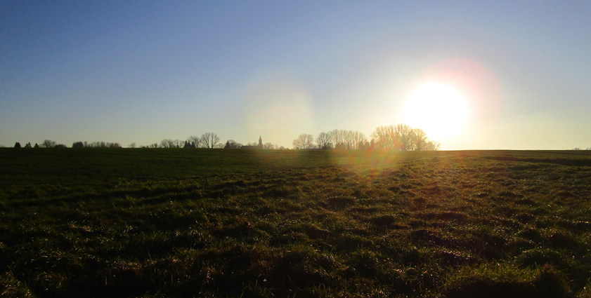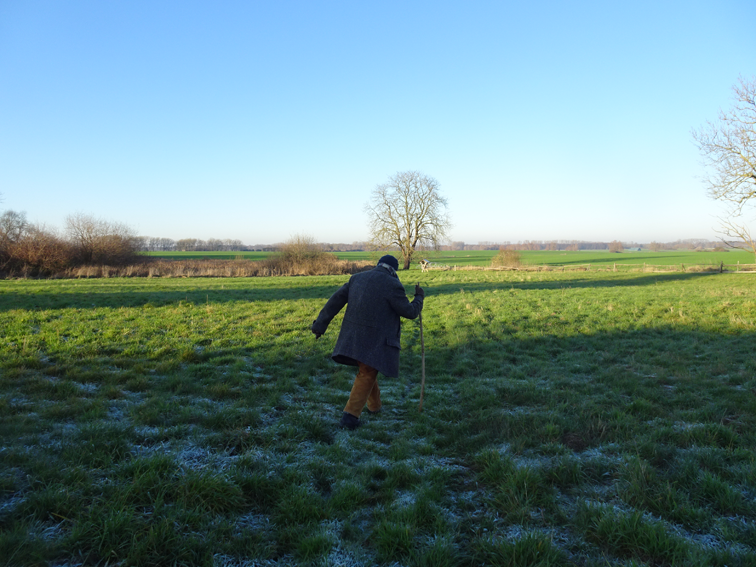 Der Weg über die Felder zum Wald. Am Graben, von wo wir die Stadt brennen sahen vor fast 80 Jaren. Die tote Stadt. Fassen sie noch mal.