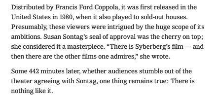 Wie schrieb sie damals vor ihrem Essey zu diesem Film." Wer nicht von 3000 Jahren sich weiss Rechenschaft zu geben,