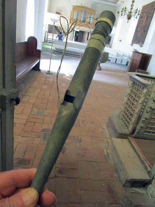Von der Orgel in N. vor 45 war nur diese Pfeife übrig, gefunden. Nun ist sie wieder da. Als erste aus der Werkstatt des selben Orgelbauers Buchholz in Stettin. Wer hätte das gedacht.