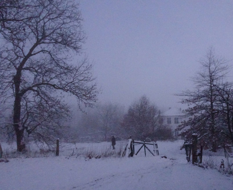im Dezemberschnee aufbrechend