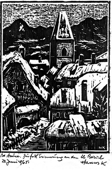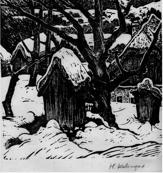 Zloam wo Hanns Kobinger der Maler aus G. wohnte als wir uns trafen, so aus dem Hause schauend und gehend wenn es Winter ist
