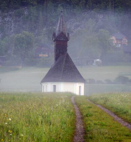 J. Ude, der Priester, nach G. verbannt, wohnte am Waldrand mit Blick auf die Kirche über dem See und die Gräber dort. Jeden Morgen um 6 die Messe und Andacht haltend für die Frühaufstehenden vor dem Gang in die Berge, auf die Berge der Almen und der Kühe. Oder für die Knechte im Wald.