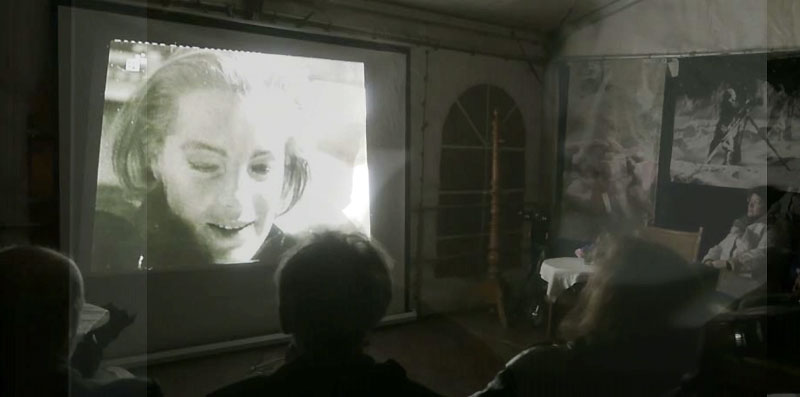 Jenny singt mit Klavier, M. Hamann die alte Leherin aus N. von 1945, jetzt 97 dirigiert guten Abend gute Nacht, Romy, ja warum denn das, als Film privat, wie sonst nie, und von Fritz Lang die Frau im Mond, der Film zu Rubljow von Tarkowsky und der Faust aus Russland ja und Bach aus der Wüste in Palmyra, Schlösser, der liest aus dem brennenden Demmin, 8mm auf den Filmen in N. und Karl May sieht das Ende der Stadt, wie aus der Nacht, dem grossen Monolog, dies alles voraus sehend. Orkan auch, dass alles fällt, was eben noch war.
