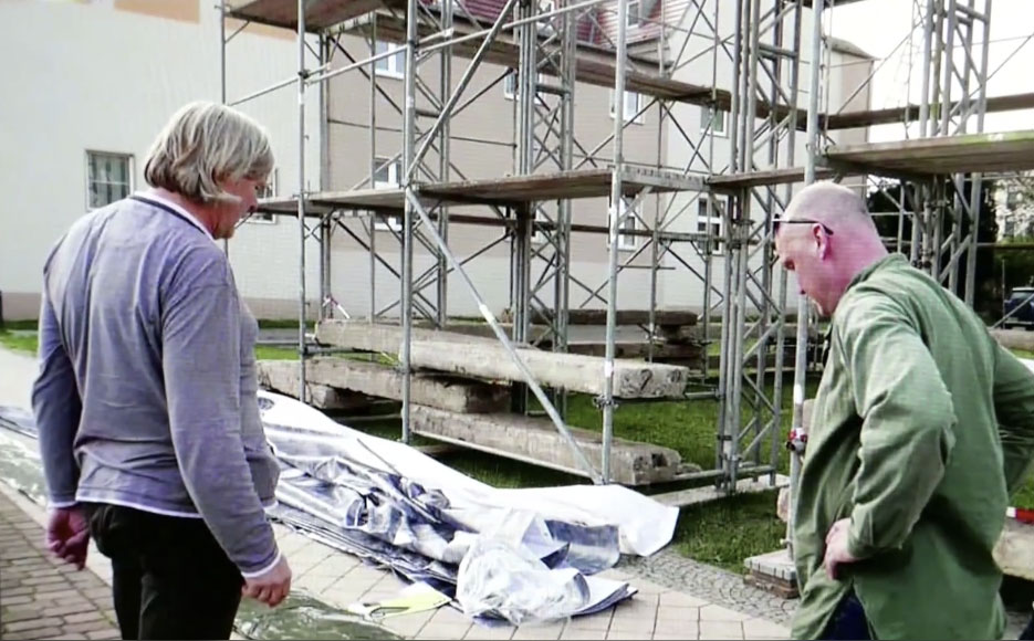 Aber soweit sind wir noch nicht . Die Fassaden -Prospekte wie im Theater oder Film müssen hochgezogen werden. Gut, dass es Freunde gibt, die das können und tun.