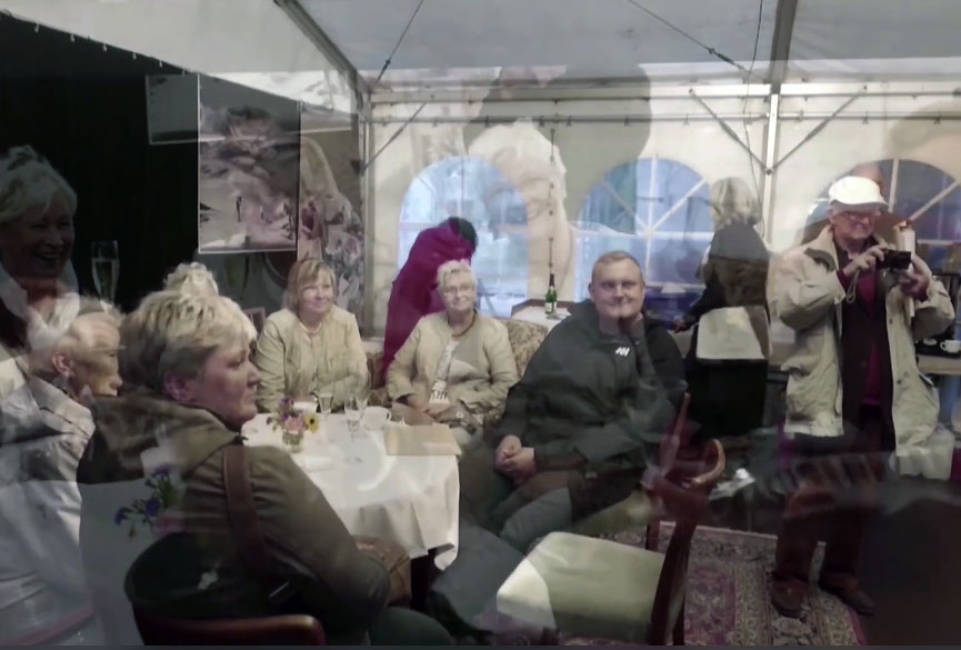Aber wo ein Café ist und ein Fest der Wiedereröffnung, da gehört auch Gesang dazu. Das ist die Jenny und ihr Lehrer Wieczorek. Zur Begrüssung... "ich hab dir zu tief in die Augen geschaut"
