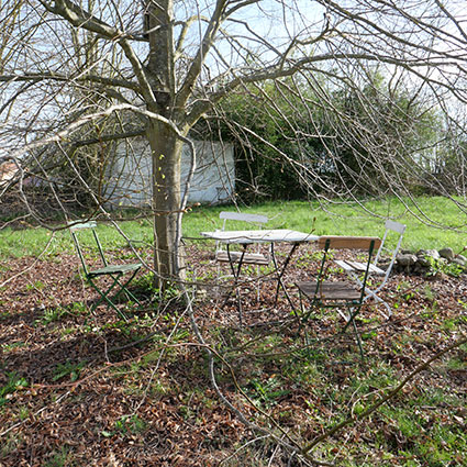 Den Baum, der hier stand,als wir wiederkamen gefällt, zu ersetzen, zu sitz drunter heute mit breit ausladenden Zweigen über uns geschützt