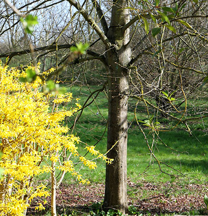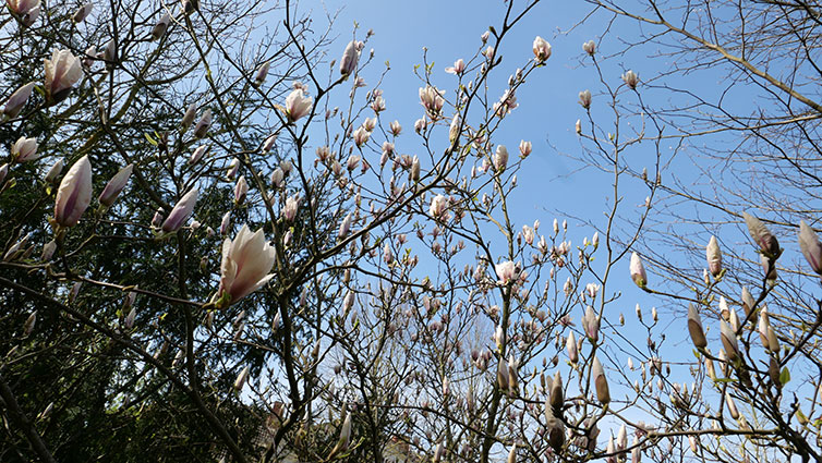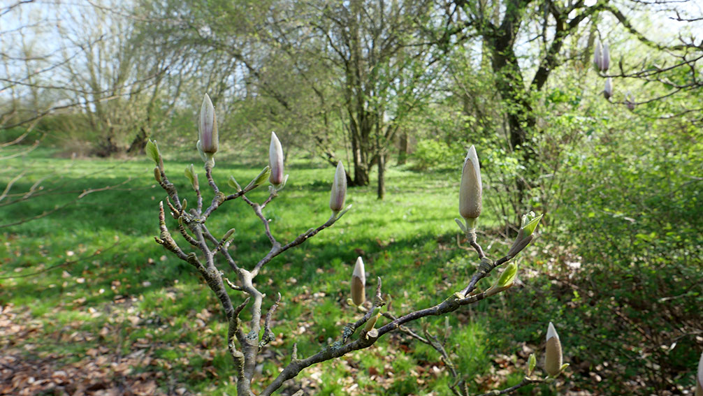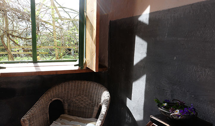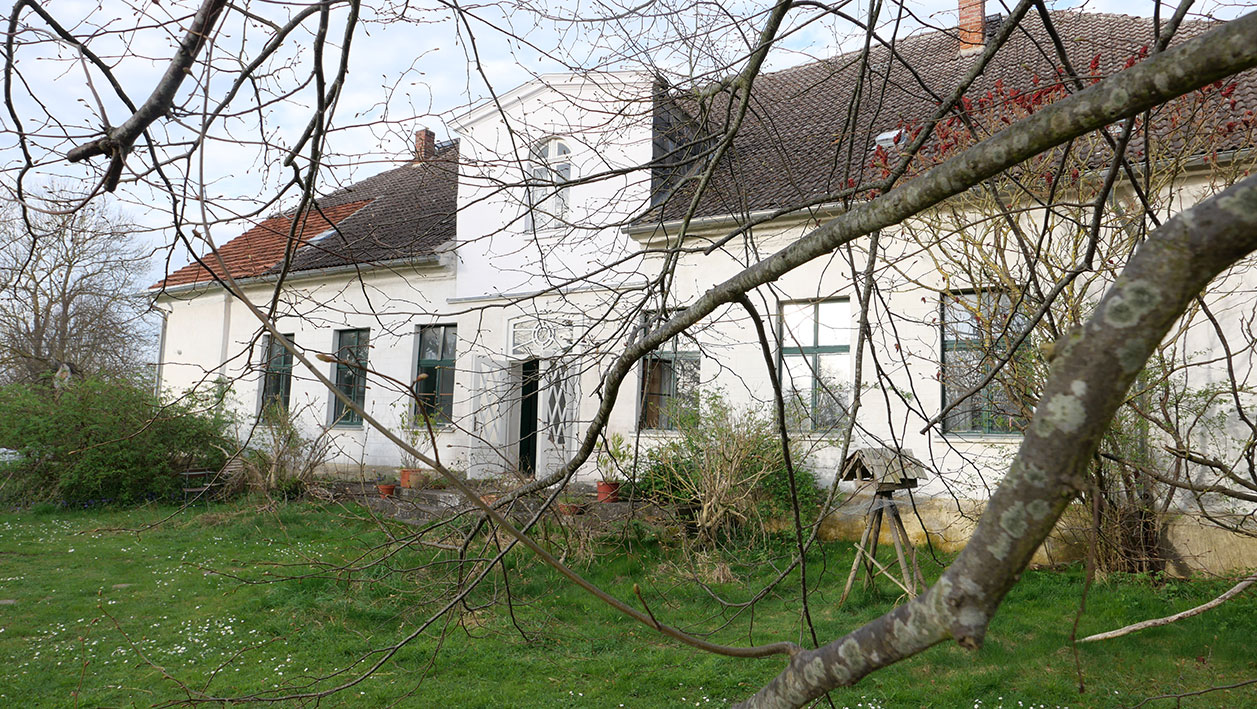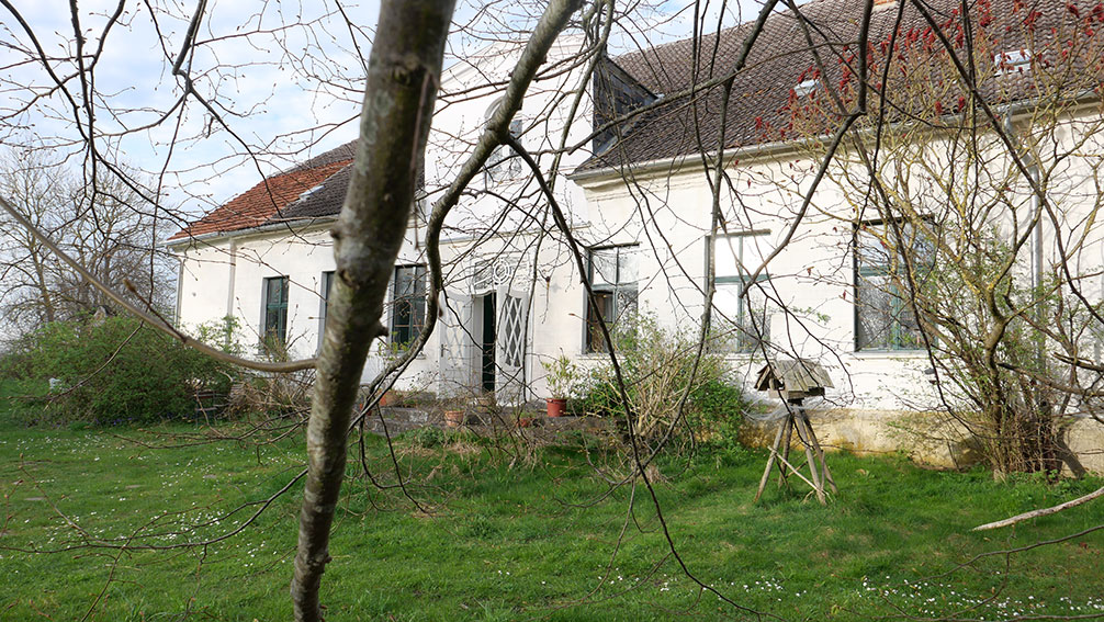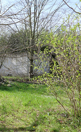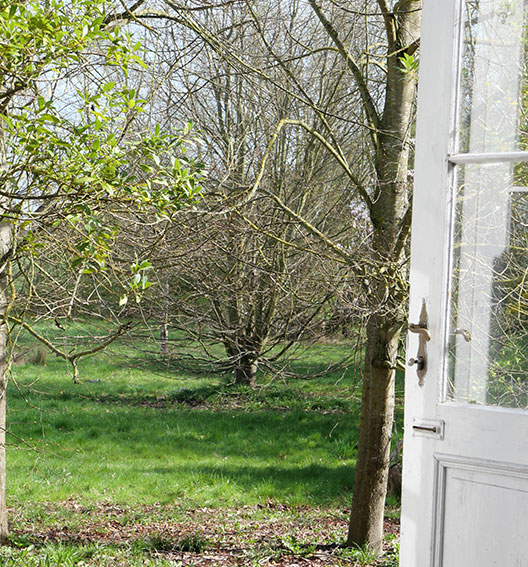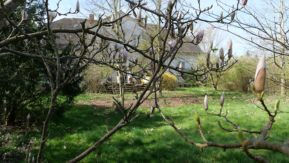 unter dem Bau zu sitzen mit diesem Blick aufs Haus durch die sie durchschauen, bevor sie aufgehen die Knospen der Blätter nur jetzt so zart