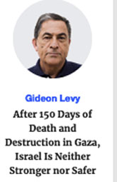 Diese 150 Tage waren grausam und schwierig und haben nichts getan, um Israel zu nutzen und werden nichts dafür tun, weder kurz noch langfristig. Im Gegenteil, die Hamas ist stärker hervorgegangen. Tausende ihrer Kämpfer wurden getötet, aber es ist zum Helden der arabischen Welt geworden. Dennoch wollen die meisten Israelis mindestens 150 Tage mehr davon ; es gab keine öffentliche Opposition gegen den Krieg, selbst nach fünf Monaten des Todes und der Zerstörung in beispiellosem Ausmaß, nachdem Israel zu einem Ausgestoßenen geworden ist, der auf der ganzen Welt verhasst, blutig und wirtschaftlich beschädigt wurde.