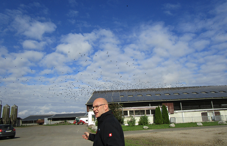 und weiter gehts in die Ställe, die wir schon kennen, wenn auch jetzt erweitert. Die Vögel fühlen sich zuhaus. Wo Mist entsteht von Kühen ud Stroh.