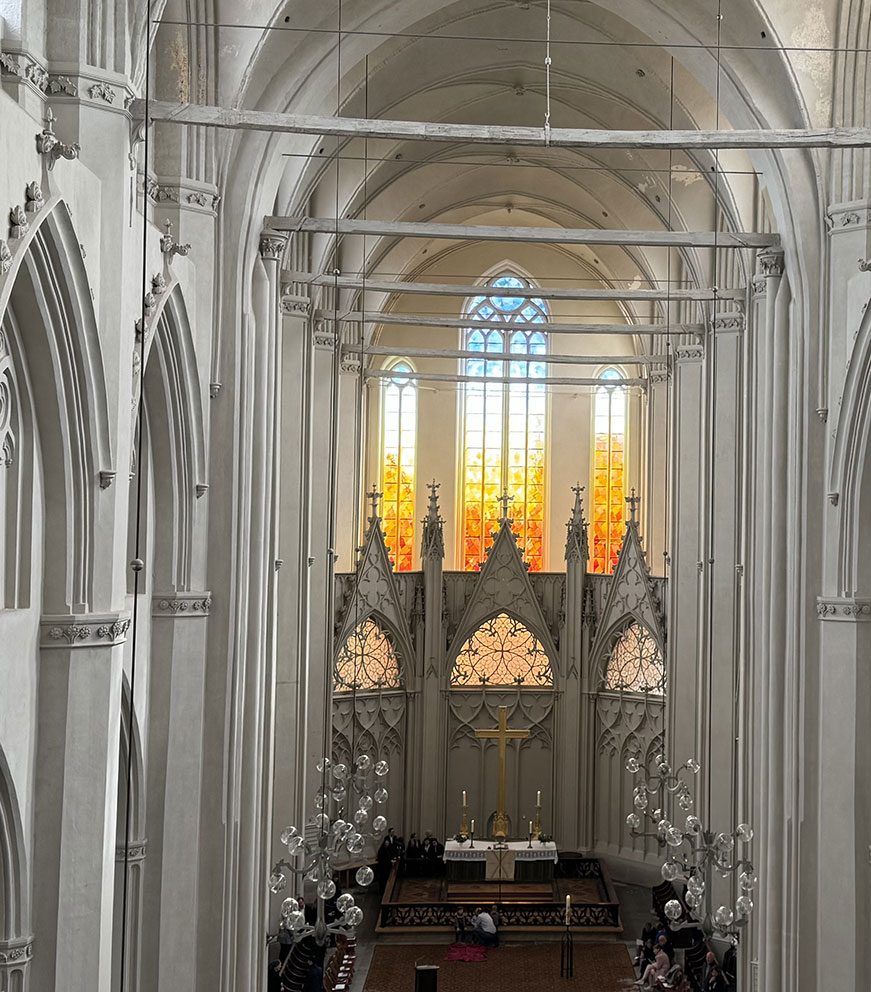 Dort auch die Kapelle in Blau aus schwedischer Zeit in Vorpommern, wie der Alter in Nossendorf auch war und das Gestühl unter der Orgel noch unter späterer Übermalung und vielleicht so einmal wieder im Original.