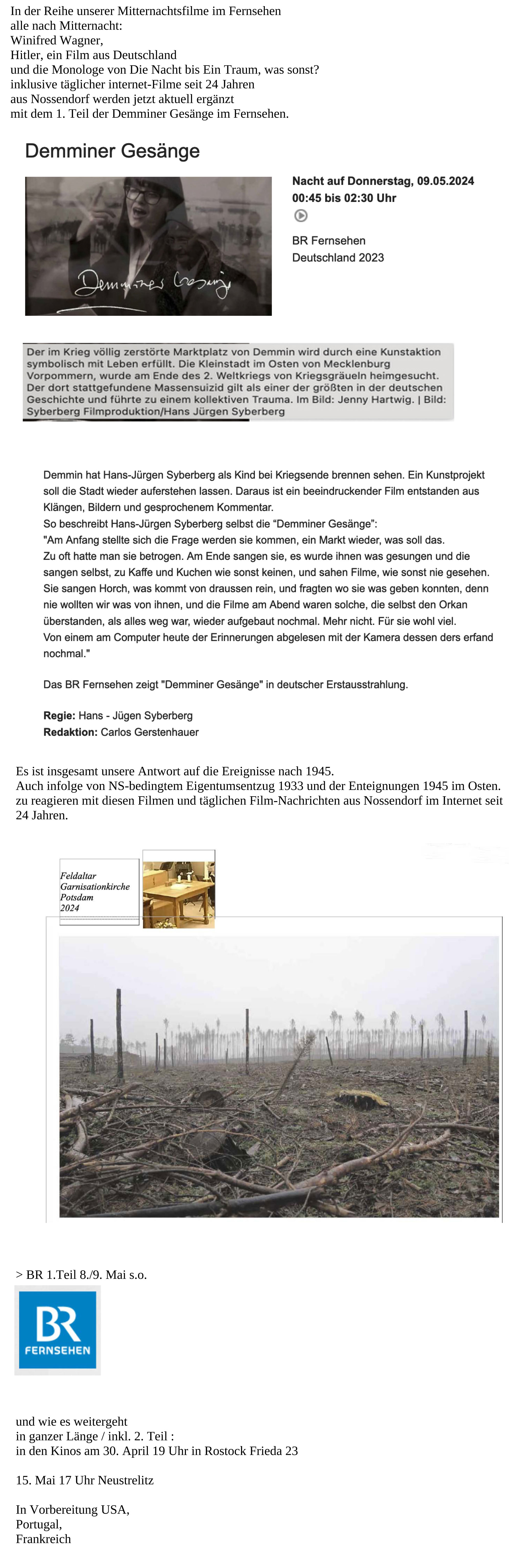 Wir aber haben die Ankündigung der Demminer Gesänge im Fernsehen 1.Teil