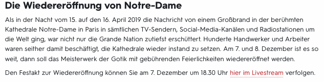 Alle da. Nur einer nicht . Der aus Moskau. Er wollte bei seinem Besuch in Paris vor allem Notre Dame sehen. Dieses Treffen. unter diesem Dach wieder, aus diesem Anlass der Antwort auf das Unheil, wie ein Prüfunhg, war mehr wert als alle Armeen der Welt.