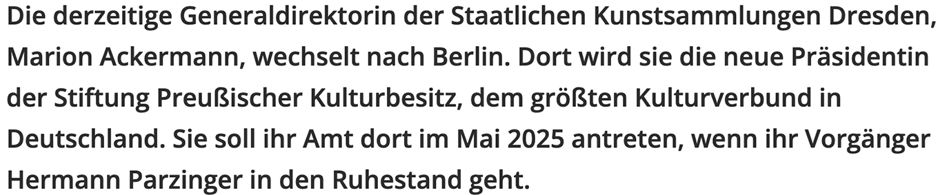 P. der Vorgänger hat das Schloss Berlin in jetzigem Zustand zu verantworten und vieles andere auch. Die Kulturverwaltung zentral aus Berlin ist nicht gut bestellt.