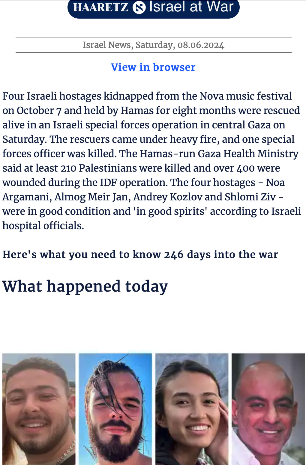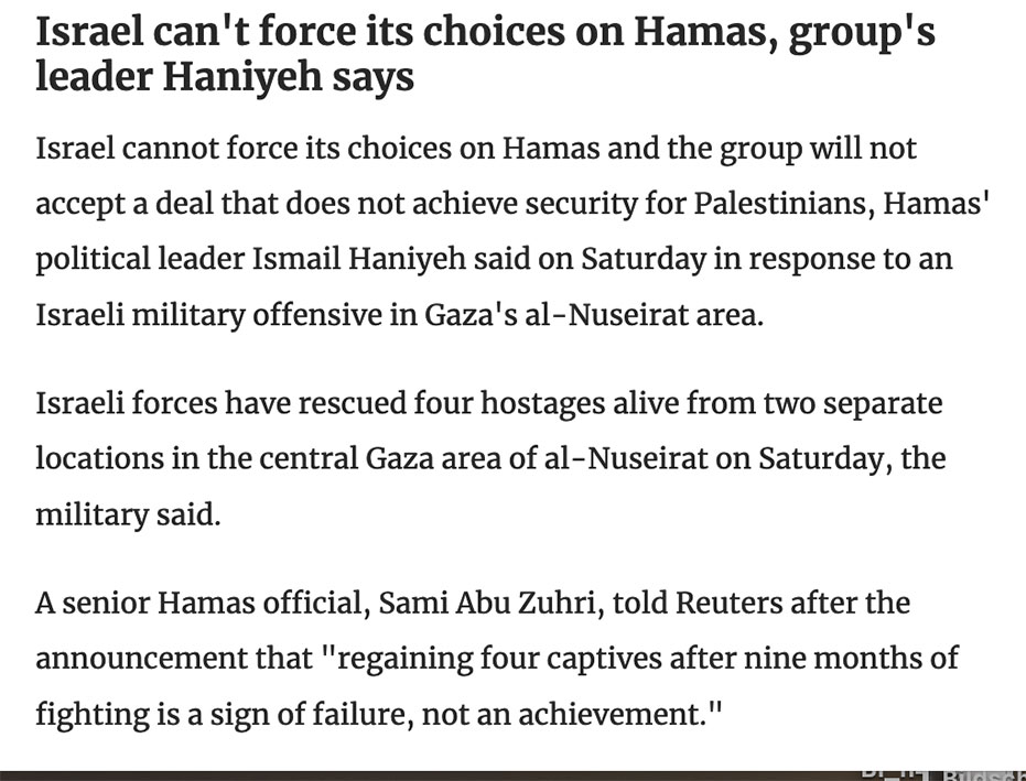 Mehr sollten den Abgang wagen, die Toten klagen an. Jeder Tote aus solchen Befreiungen zuviel. Nach 6 Monaten 4 Menschen frei - Tausende Kinder tot, verhrüppelt, Elternlos . Was für eine Bilanz(Gidon Levi / Haaretz).