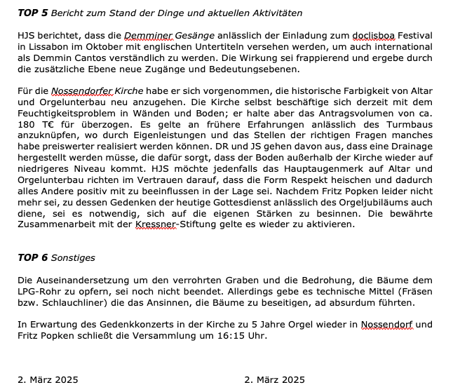 Protokoll zum letzten Jahr aus dem September -