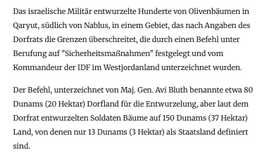 Wer solche Bäume -der Oliven- fällt, fällt auch Menschen, mit Kindern und Frauen. 70 000 nun in Gaza/in Israel sind Spezialisten dafür.