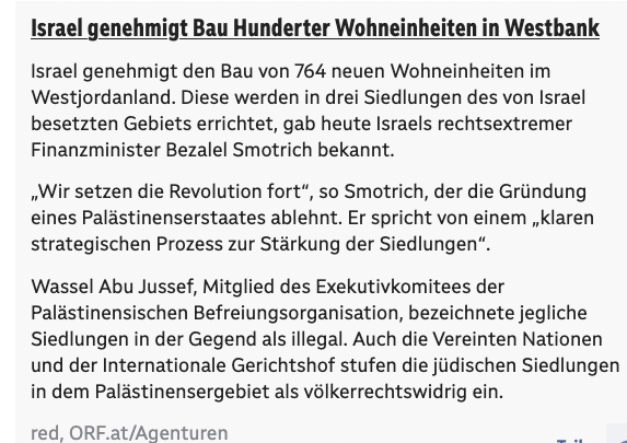 Aber Israel hat das Recht sich zu verteidigen, sagte unser Bundeskanzler jüngst wieder bei seinem letzten Besuch in Israel. Nach der Meldung von 70 000 Toten.