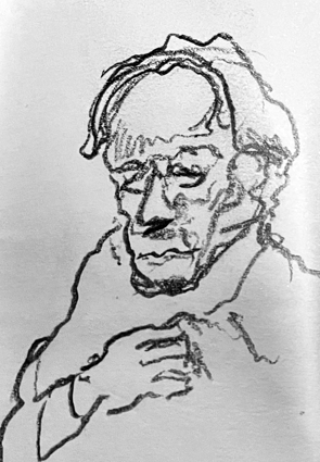 dann kennt er sich aus. Wie es schwarz von den Schultern herabtrieft.