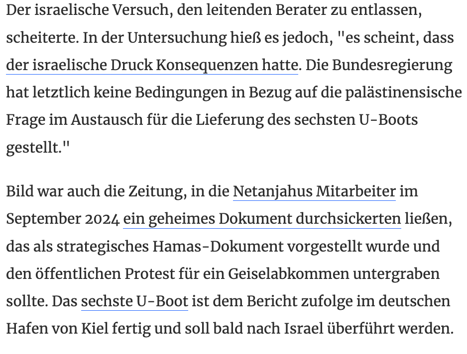 Abend in der Nacht im TV ARD über U-Boote für Israel 1 Mrde das Stück jetzt wieder eines fertig.... heute morgen EU-Beschlüsse über Weigerungen neuer Waffen für Israel.. Warum U-Boote die Atomköpfe tragen können für einen Land im Krieg wenn man weiss wo sie das haben ...