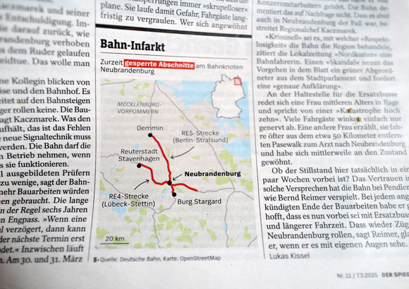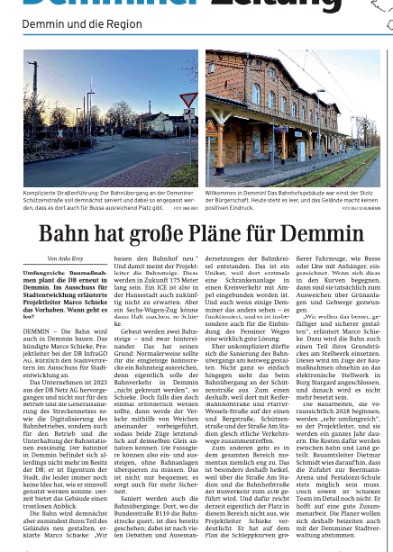 Nun endlich auch im SPIEGEL, Demmin seit einem Jahr nicht mehr erreichbar. Eine ganze Region. Noch im Krieg verbunden bis ins Erzgebirge (Bad Elster) dort ...Bald mehr