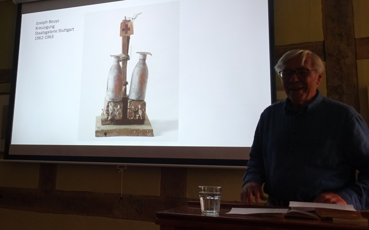 Einführungen in die Welt des R. Steiner als Urvater von J. Beuys der Moderne in Deutschland nach 1945. Beuys selbst einer, der den Krieg erlebte und daraus alles was dann sein Werk wurde baute . Mit Fett und Reden und Hasen und Aktionen eigener Figur. Der Erfinder des Narrativs seiner eigenen Geschichte dazu. Im Kreise der Anhänger und Feinde. Erinnerungen auch an Anfang N. nach Besuch in Pinnow plus Begegn. J.B. in Bln. Hochschule der K. und Bayeuth 1982 Prem. Parsifal. Und documenta. als Kollege der Bäume dort