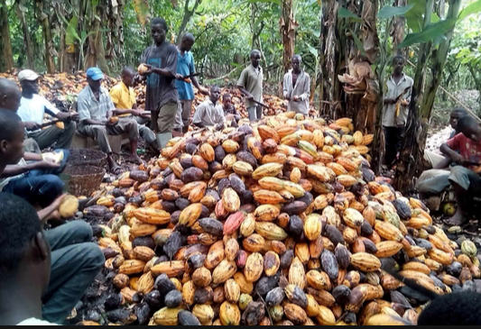 auf einer kakaoplantage, die immer noch als solche funktioniert. die häuser werden nur anders genutzt heute . Morgen mehr...