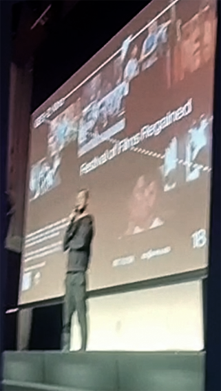 "Im Wesentlichen geht es um den Versuch, den Dialog zwischen diesen beiden Kulturen wiederzubeleben. Diesem Thema ist dieser Film gewidmet. Bevor ich Sie nun sozusagen mit diesem außergewöhnlichen Film allein lasse, möchte ich Hans Jürgen herzlich danken für die Möglichkeit, diese Filme zu zeigen, für die Vorführungen auf seinem Gelände parallel zu unseren und dafür, dass man mir, wie ich glaube, nun aufmerksam zuhört. "