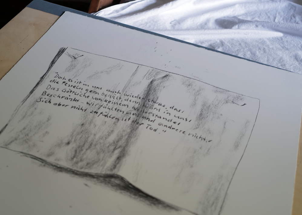 Jedes Wort gedruckt nun ein Strich. Als Blatt, dem Bette zugeeignet und in ihm mitzunehmen.