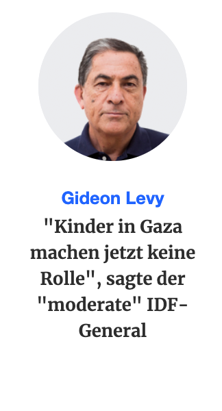 Palästinensische Mütter haben keine Kissen mehr, ein großer Teil von ihnen hat auch keine Kinder mehr. Aber für Haliva spielen Kinder jetzt keine Rolle. So spricht ein General, der zuvor von Raya Yaron-Carmeli, dem Sprecher der Antikriegsbewegung Machsom Watch, gelobt wurde.