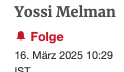 Es gibt eine große, berechtigte Sehnsucht in Israel, Netanjahu zu entfernen, aber Sie sind nicht die Person, die uns vor seinem Regime retten kann. Wenn der Weg zur Rehabilitation durch die Köpfe des Shin Bet geht, dann ist es nicht der richtige Weg. Die Tatsache, dass Sie und Ihre Art die selbsternannten Agenten des Wandels sind, ist ein unwiderlegbarer Beweis dafür, dass es in Israel keine Alternative und keine Opposition gibt, schon gar nicht von links.