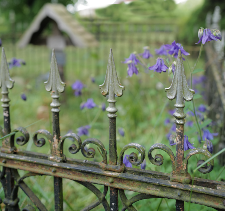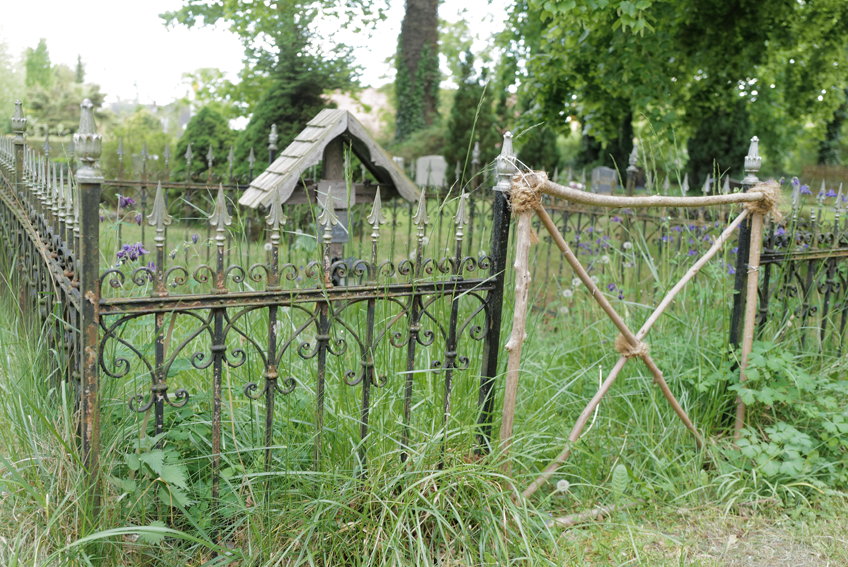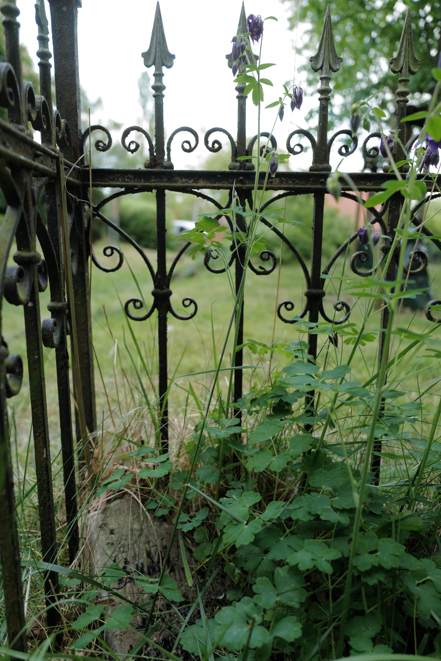 Das eisene Gitter umkreist wachsem das kleine Geviert.