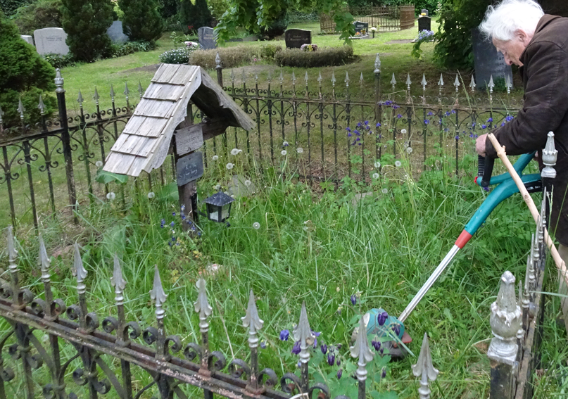 In dem was sie früher auch Gottes Acker nannten. Fromme Leute und auch auch solche einfach so dazugehörend.
