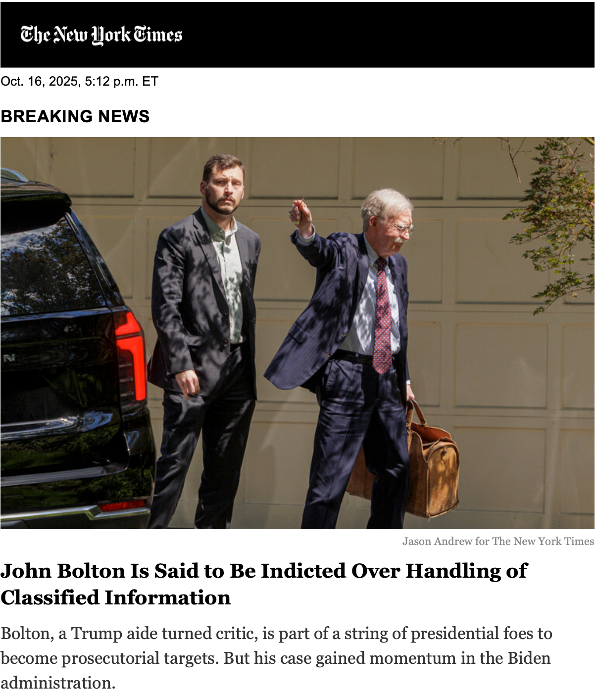 Bolton diente in Trumps erster Amtszeit als Nationaler Sicherheitsberater und entwickelte sich später zu einem seiner schärfsten Kritiker. In seinen im vergangenen Jahr veröffentlichten Memoiren bezeichnete er Trump als amtsunfähig. Insidern zufolge drängte die Führung des Justizministeriums auf eine rasche Anklageerhebung gegen Bolton, obwohl einige Staatsanwälte das als überstürzt ansahen.