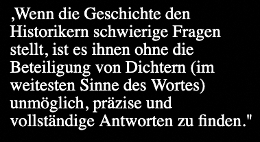 ,Wenn die Geschichte den Historikern schwierige Fragen stellt, ist es ihnen ohne die Beteiligung von Dichtern (im weitesten Sinne des Wortes) unmöglich, präzise und vollständige Antworten zu finden."