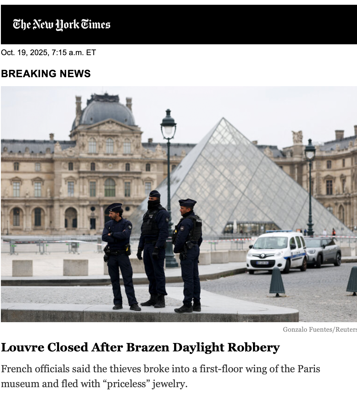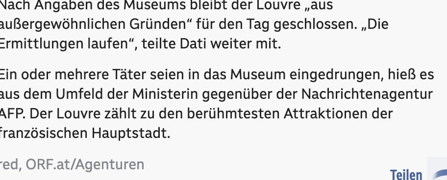 Im weltberühmten Louvre-Museum in Paris hat es heute nach Angaben der französischen Kulturministerin Rachida Dati einen Raubüberfall gegeben. Es sei niemand verletzt worden. Nähere Details zum Tathergang oder was genau gestohlen wurde, nannte sie zunächst nicht.