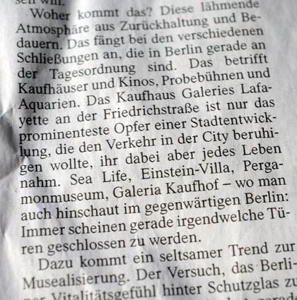 Wie gelähmt. Nicht nur Berlin. Als wir in der Provinz abseits in Vorpommern in Demmin so sprachen und einen Film davon machten. Die Leere im Zentrum als Symptom des Ganzen.