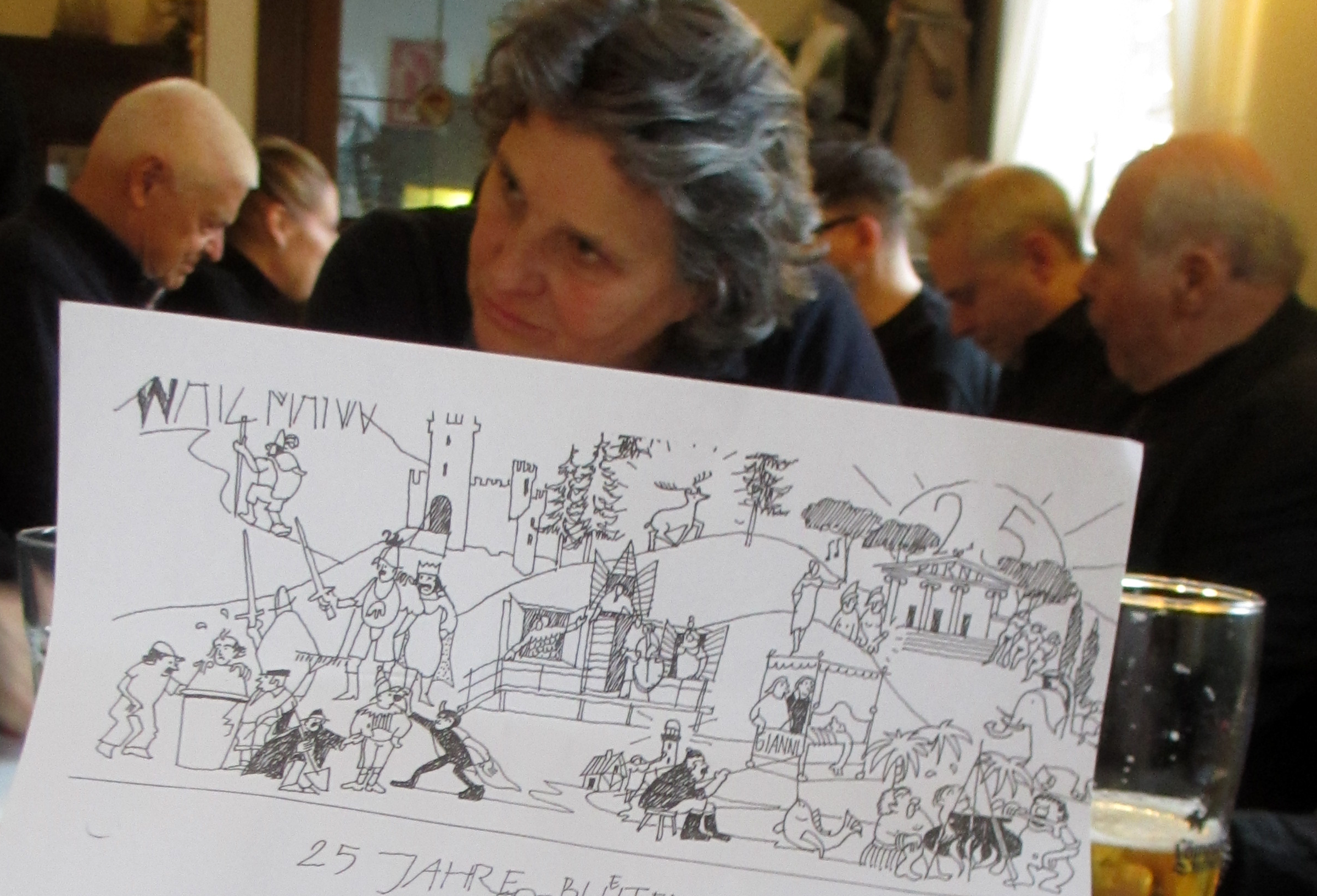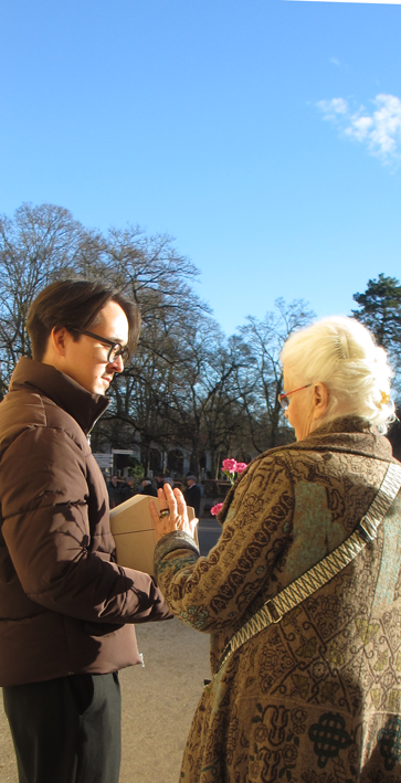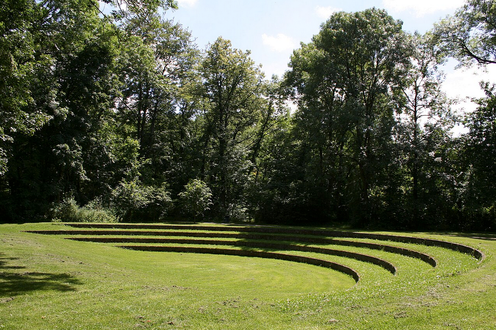 „Das Amphietheater im Englischen Garten“ DER BLÜTENRING mit in die Erde versenkten Sitzen und einem Ensemble aus den Bürgern seine kulturelle Tat als Architekt und als Darsteller.
