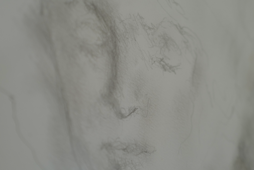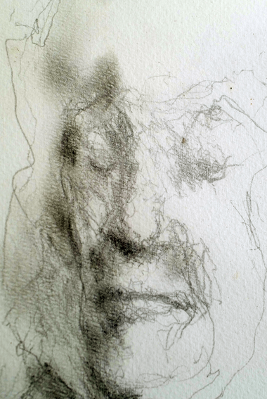 mit Blicken nach innen suchend