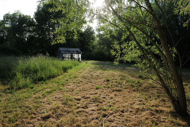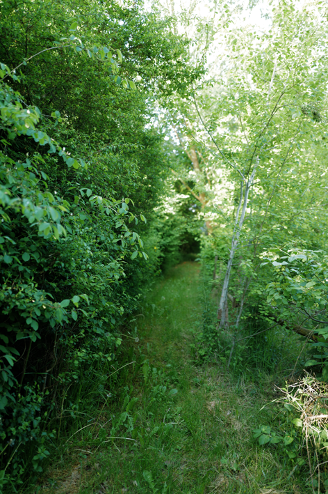 Wo der Graben war und ein Rohr darunter und nun wieder Bäume stehen.