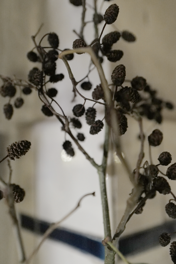 Aus dem Nagel des Turms der Kirche in N. und den verholzten Zweigen der abgestorbenen oder mehrfach beschädigten Bäume am Kellergang in Demmin, nun wieder durchgekommen aus erstem Trieb. In den alten Eisenringen vom Turmbau gehalten.