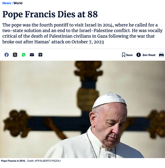 Zur selben Stunde als wir seinen Ostergruss an die Welt gestern hier > notierten diese Nachricht aus NY/Times.