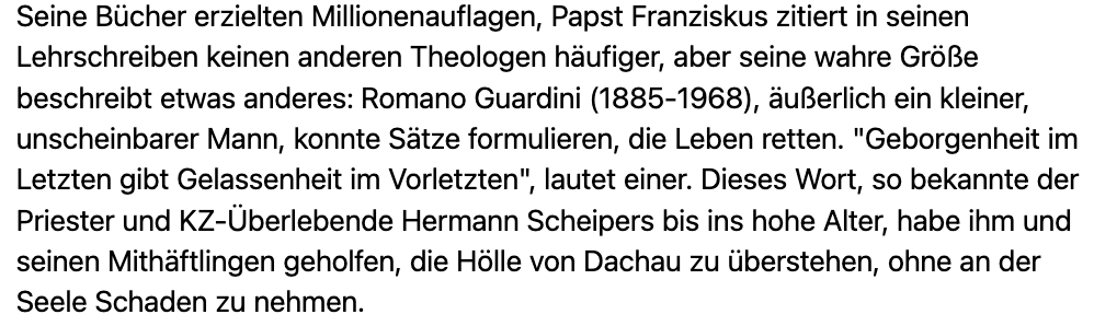 Als der neu gewählte Papst sich Franziskus nannte und Deutschland begrüsste, sprach er von Romano Guardini, seinem Lehrer hier, den wir noch im München, in der Ludwigskirche neben der Universität erlebten.