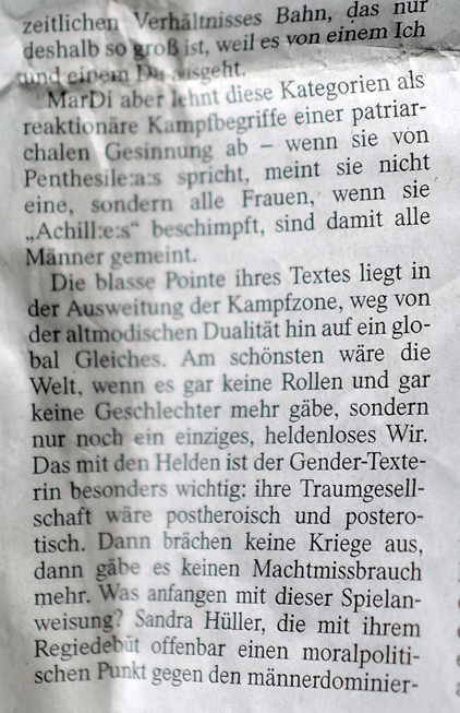 Als Leni Riefenstahl Ende der 30er Jahre für Hitler ihre Penthesilea plante, begann der Krieg, der alles verschlang. Den Film, Kleist. Und sie zog selbst in Krieg, nicht lange.