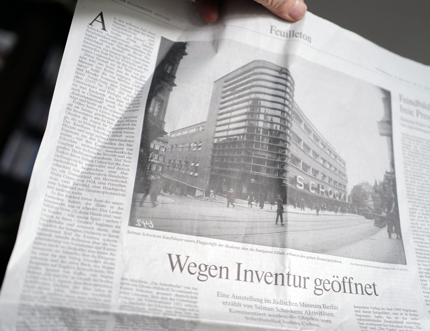 Der Bericht über das jüdische Museum in Berlin mit der Ausstellung zu Schocken machts möglich . Ja Schocken war der Gründer auch von HAARETZ aktuell. Mit solchen Texten täglich. Widerstand in Deutschland heute. Aus Israel .