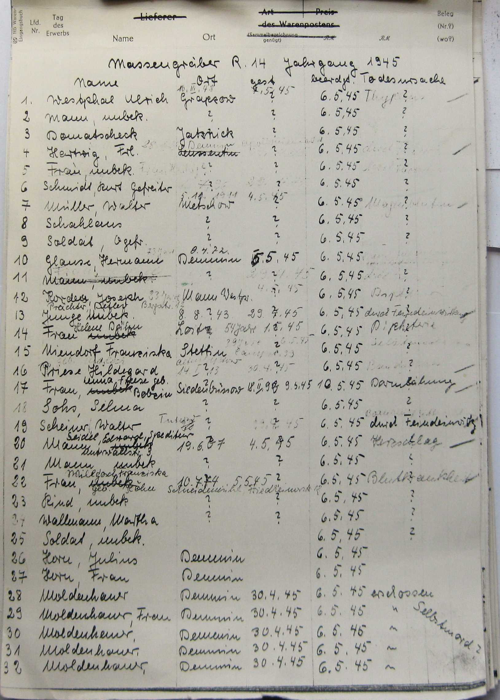 Und dann die erste Seite der Namen in den Listen der Toten von 1945 in Demmin