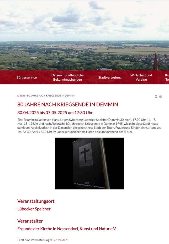 Da oben sind sie nun die Bilder des Brennenden Demmin . Karl Schlösser bald mehr.