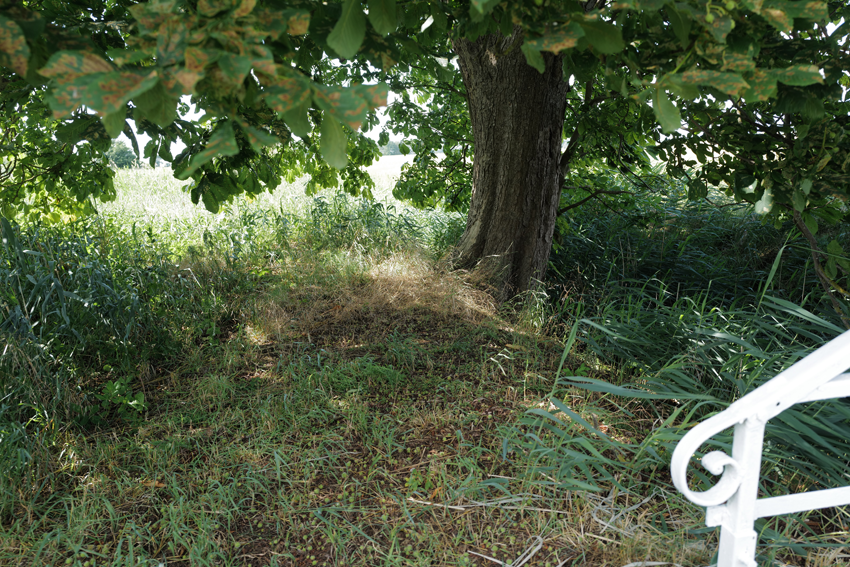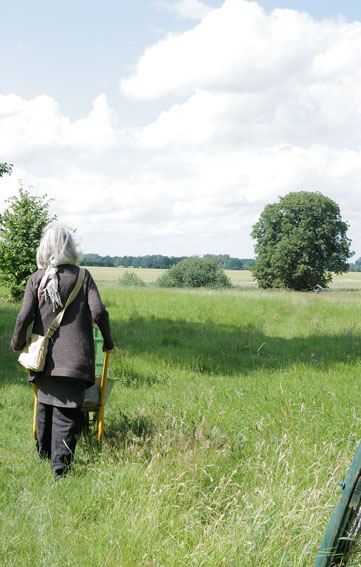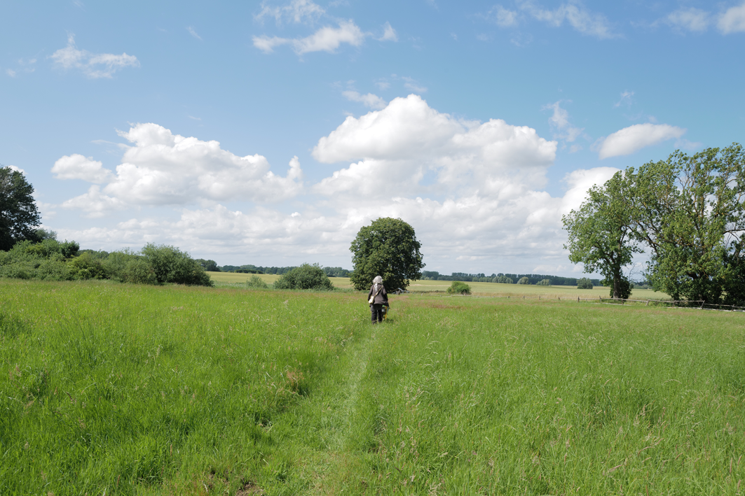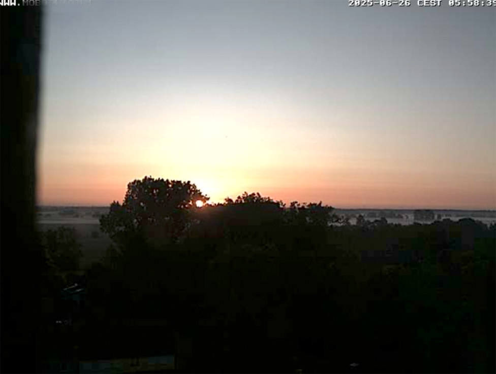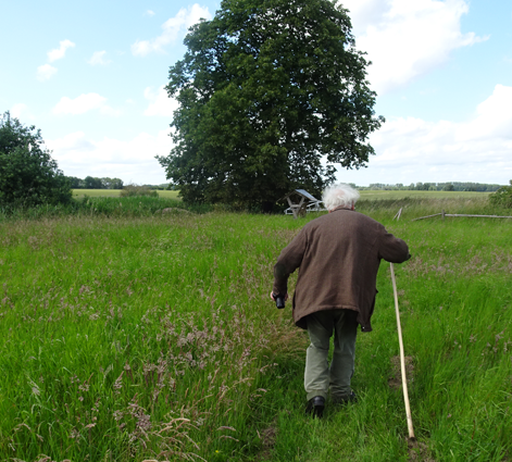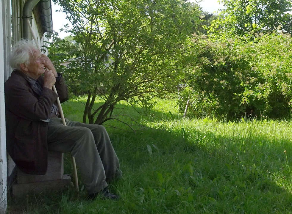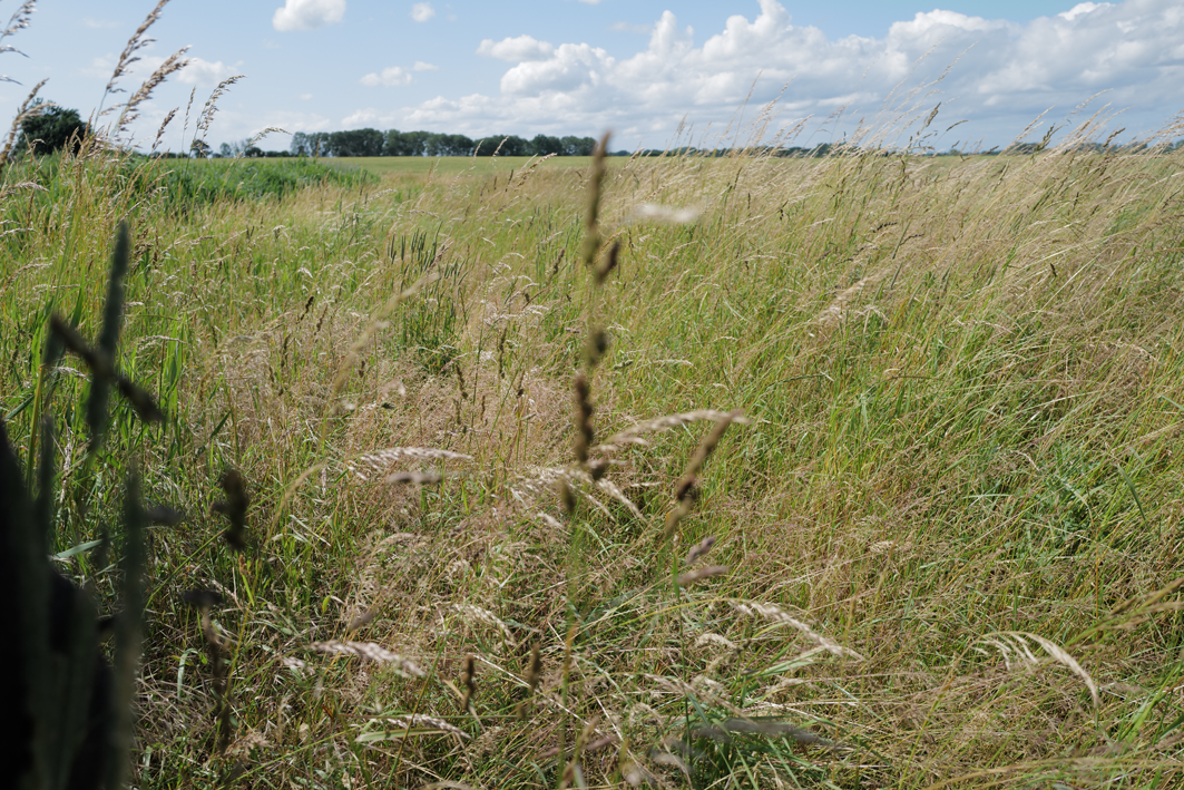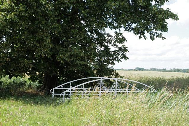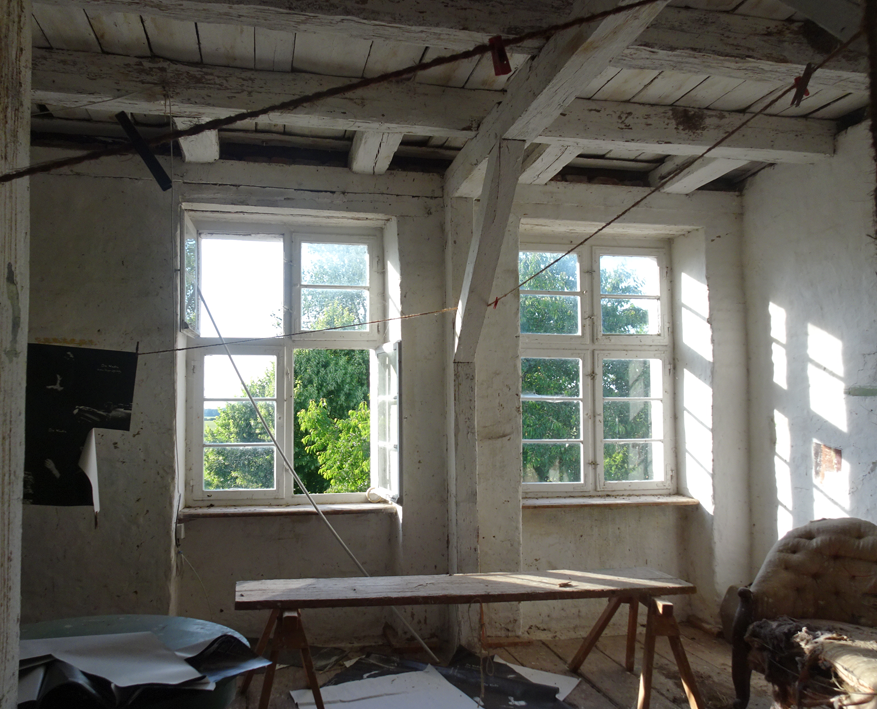 im Haus auf dem Wäscheboden die kleinen Schwalben geschlüpft mit der weiten Blick über Koppeln Graben Brücke Feöder bis zum Wald