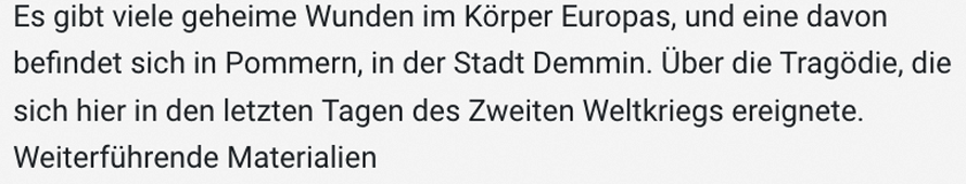 Seit einer Woche ist es bekannt.Was vor 80 Jahren in dem kleinen Demmin an der Peene geschah als die Russen kamen nun in Moskau eingeladen als Film.