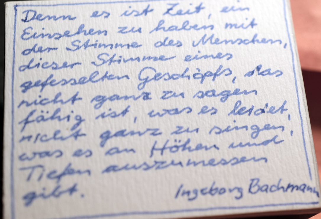 Da gäb es viel zu sagen im Weltmasstab vor und wie in der Tür am Hause neu gerettet nach 45, gegen die Weltstrom am Abgrund.